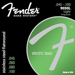 Fender stainless steel flatwound 9050’s are anexcellent choice for jazz, country, r & b and reggae.the first electric basses were made by fender, andthose basses came with flatwound strings. today, manyplayers use stainless steel flatwound 9050’s to add adifferent character to their tonal palette. from smoky jazzclubs to r&b venues, from reggae parties to countrymusic halls, 9050’s have you covered.by the way, the stainless steel construction also givesyou longer life, and the flatwound construction reducesfinger noise.